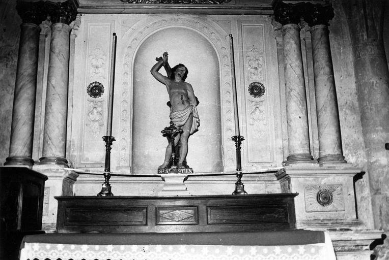 2 retables de la Vierge de Pitié et de saint Sébastien, statues : Vierge de Pitié, Saint Sébastien