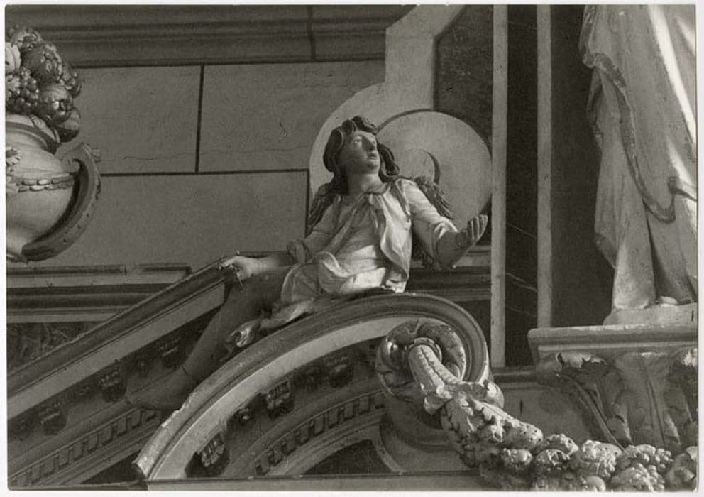 Corps principal : au centre, en légère saillie, cadre mouluré en pierre peinte et dorée dont la forme générale est un rectangle avec décrochements ornés d'une pointe de diamant. Le cadre est flanqué de chaque côté d'un double pilastre cannelé à chapiteaux. Au centre une huile sur toile. Sous ce dernier, reposant sur le gradin de l'autel, un bandeau de pierre sculptée. Parties latérales : de chaque côté, deux colonnes de marbre, l'une rose, l'autre noire, portant des chapiteaux composites, reposent avec le double pilastre sur un large socle portant sur sa face une plaque de marbre. Elles soutiennent un entablement orné de rinceaux dont l'architrave est décorée de denticules et de petits corbeaux. En arrière des deux colonnes, sur le mur du fond, entre des pilastres cannelés à chapiteaux, deux chutes de feuillages et de fruits sous des têtes d'anges. En partie supérieure, un fronton courbé brisé aux enroulements duquel est suspendue une guirlande de fleurs et de fruits, s'inscrit dans un fronton triangulaire reposant sur l'entablement du corps principal. De part et d'autre, sur un entablement secondaire, un vase à fruits. Une niche à coquille, encadrée de pilastres et d'une arc en marbre noir, une statue repose sur une console ornée de feuillages. La niche, bordée d'ailerons est surmontée d'un petit entablement à décrochements portant un fronton courbe brisé à l'intérieur d'un fronton triangulaire sommé d'un panier de fruits.