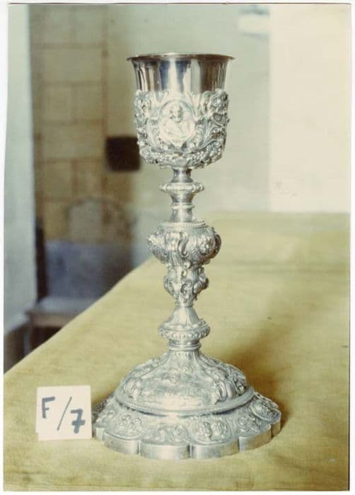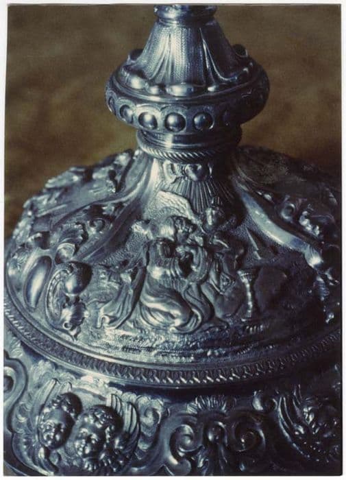 feuillage ; fruit ; en buste : Vierge, saint Joseph père nourricier du Christ, Christ ; tête : ange ; Agonie du Christ ; Montée au Calvaire ; Crucifixion ; Descente de Croix ; perle