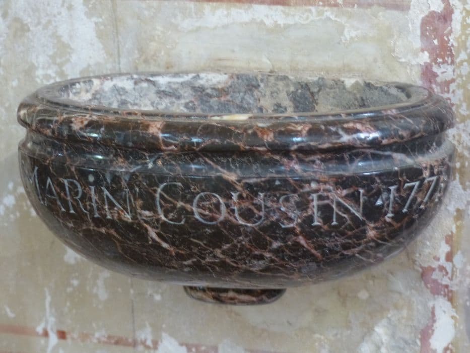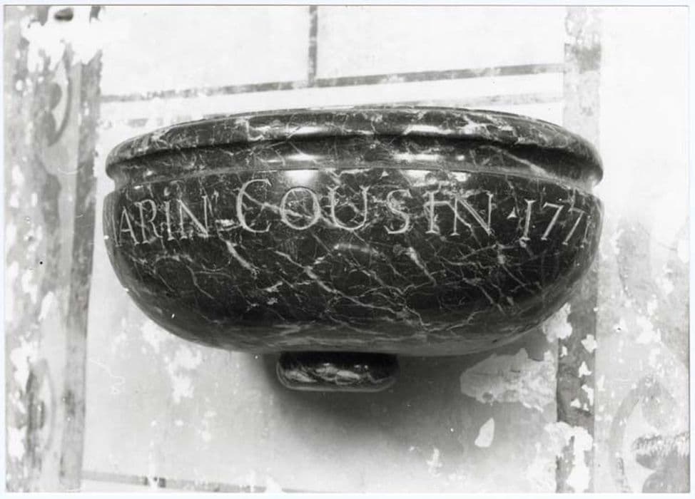Bénitier de forme ovale. La cuve a une gorge à la partie supérieure.