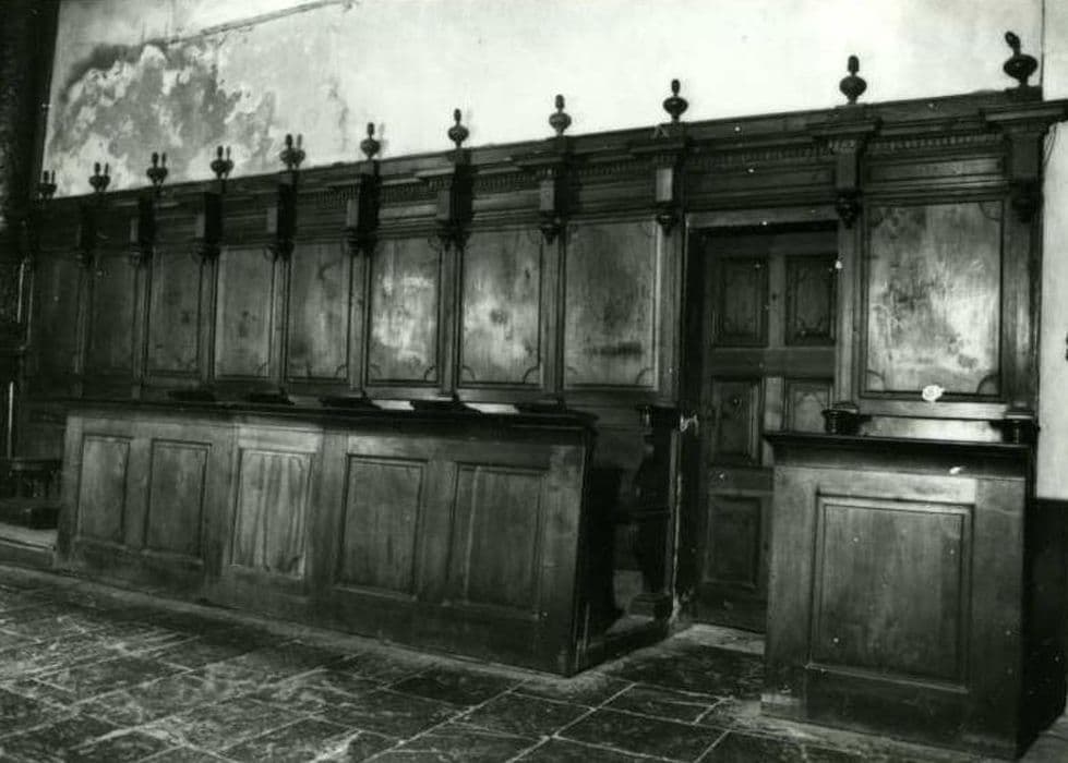 h = 267 ; l = 720 ; Dimensions des stalles du bas-côté gauche ; stalles du bas-côté droit : l = 700, h = 267