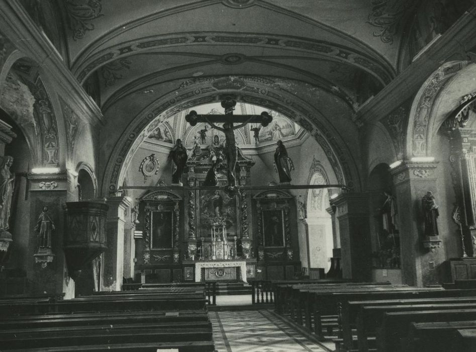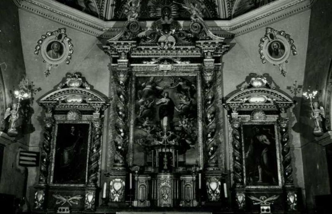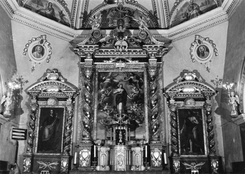 Retable du maître-autel, autels latéraux et leurs toiles.