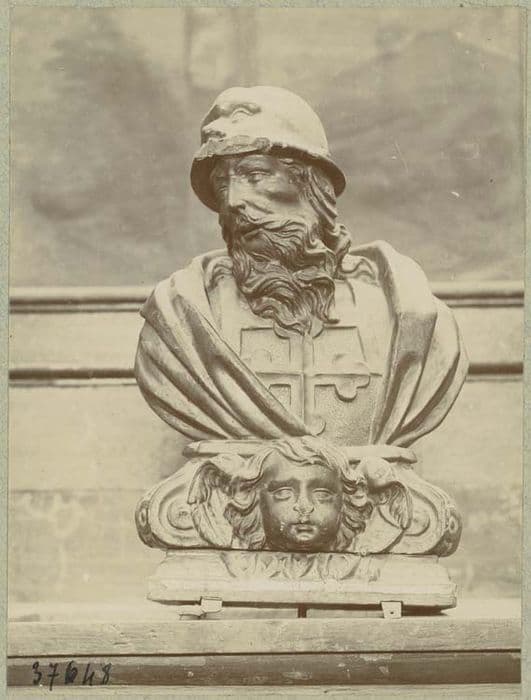 Cénotaphe supporté aux angles par des anges tenant la croix treflée de saint Maurice et décoré de rinceaux largement traités sur chacun des deux grands côtés une monstrance ovale. Ce monument est surmonté d'un buste de saint Maurice drapé, coiffé, barbu, un casque à tête humaine portant sur la tête portant sur la poitrine la croix treflée. Ce buste est un soubassement décoré d'une tête d'ange est mobile et sert de couvercle au cénotaphe.
