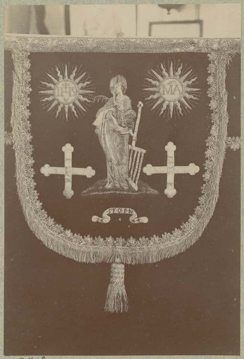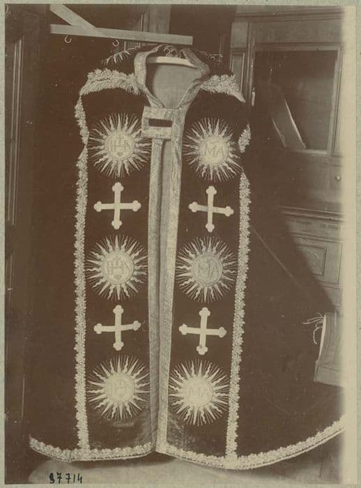 Velours rouge et broderies soie or et argent.