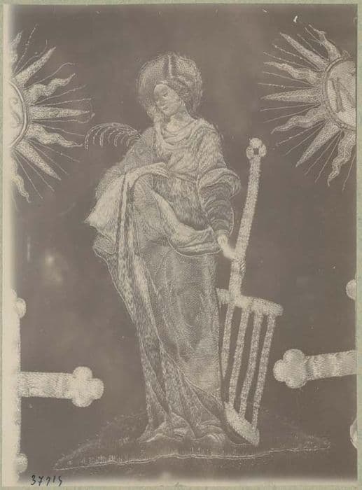 matériau textile (rouge) : velours uni ; soie ; or ; argent