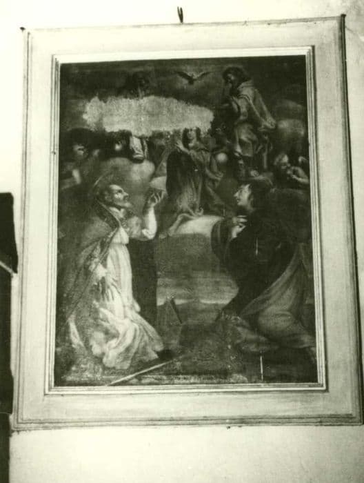 tableau, cadre : Vierge entre saint Jean l'évangéliste et saint Nicolas (la)