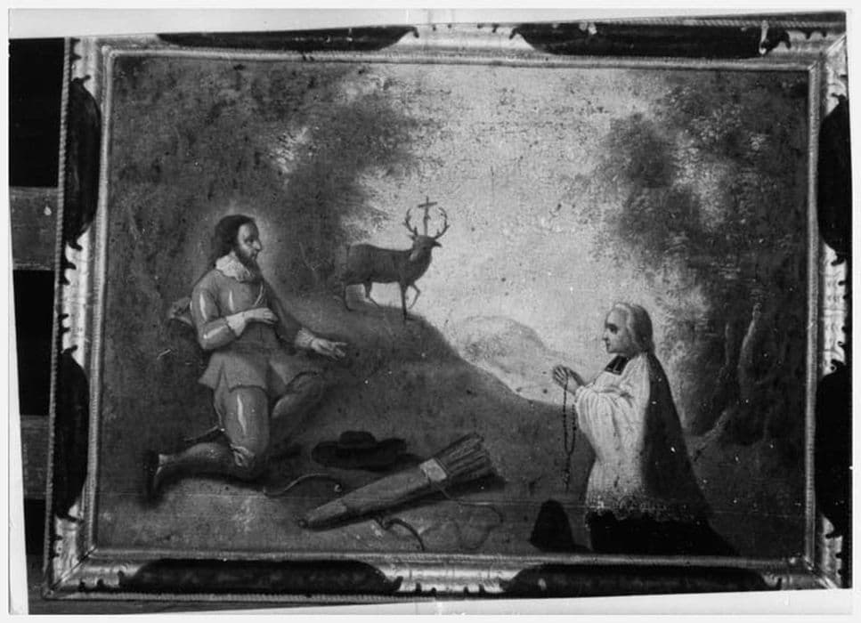 tableau ex-voto : Prêtre agenouillé devant saint Eustache