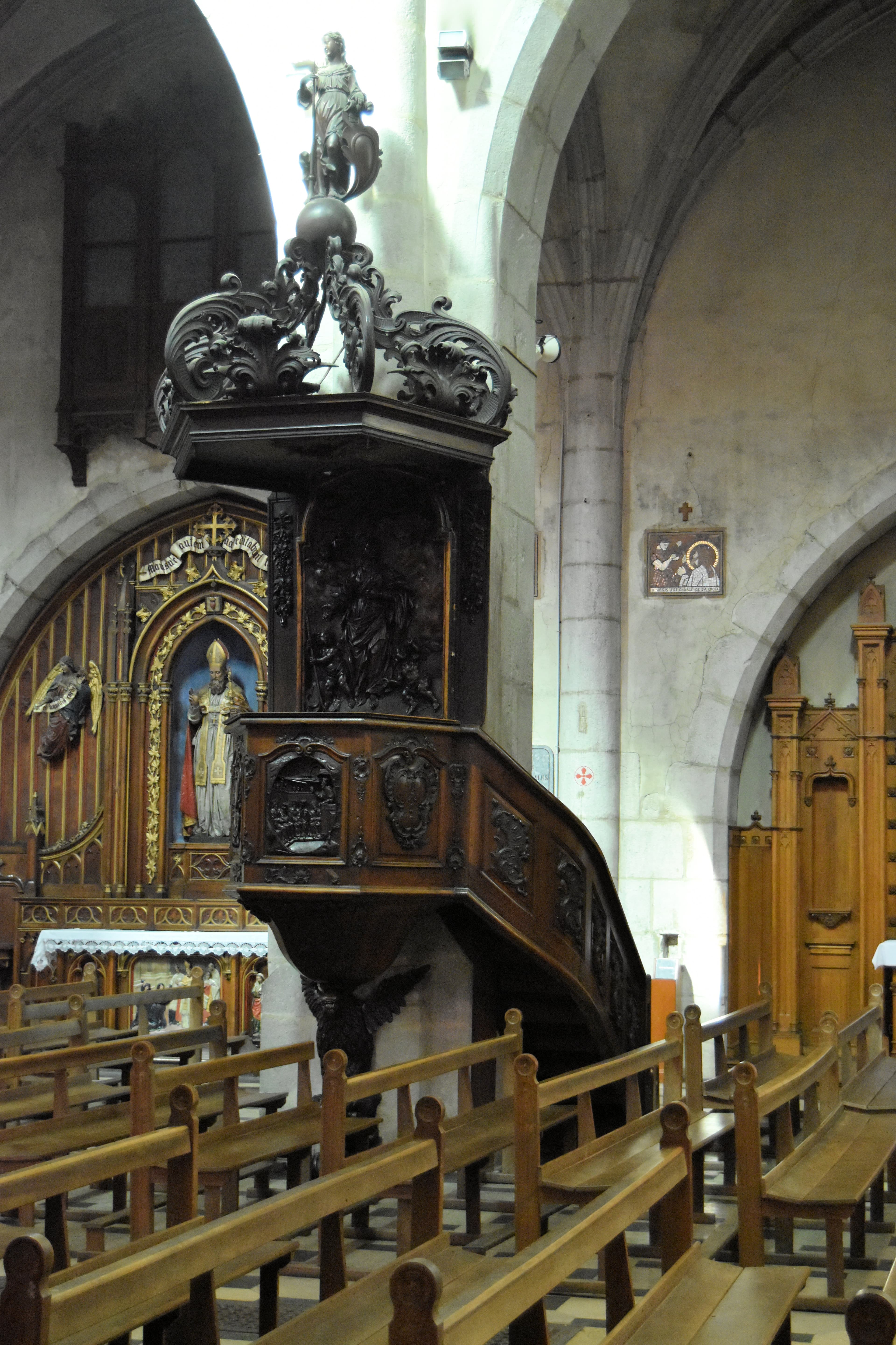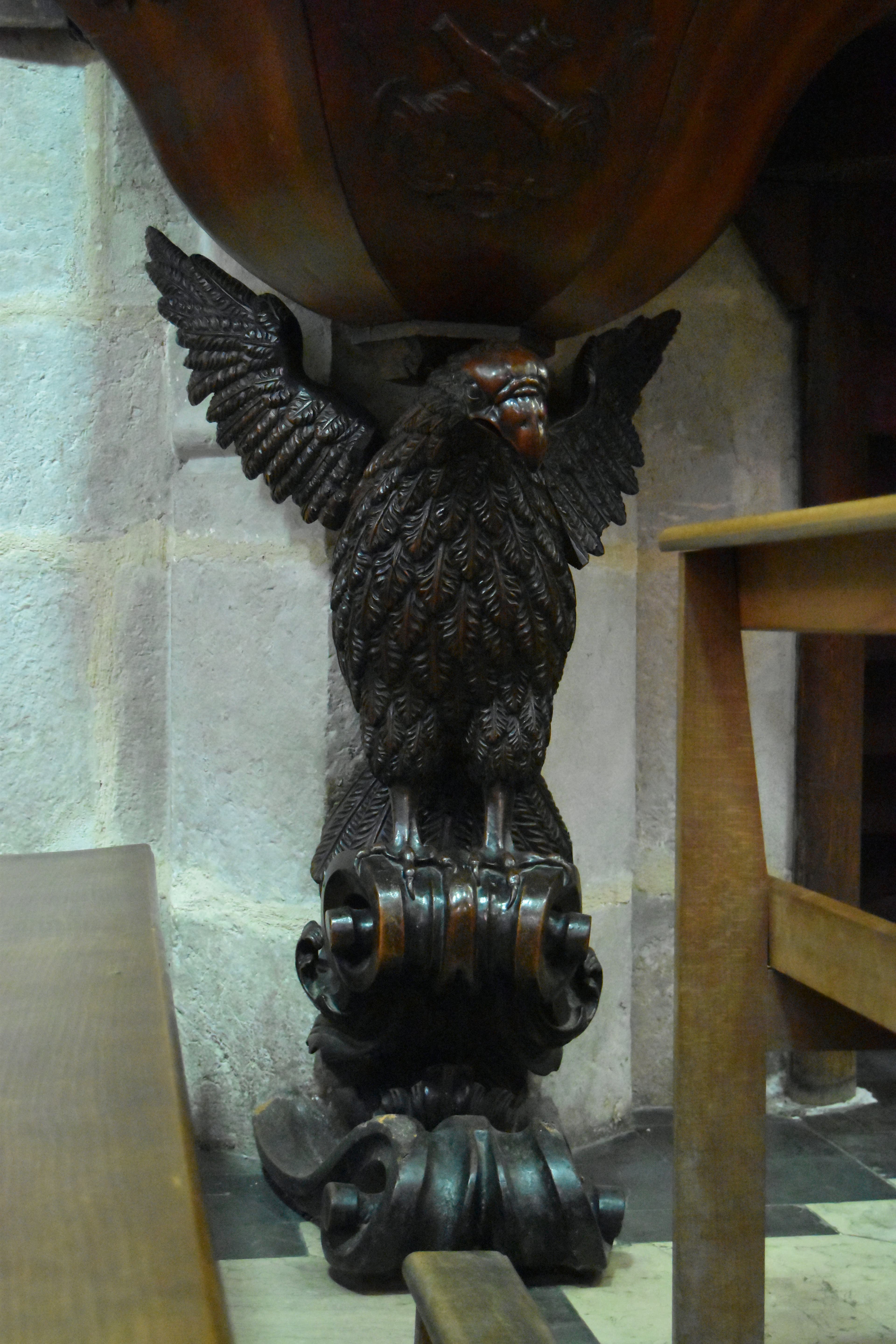 Cette chaire est supportée par un aigle en bois sculpté aux ailes déployées qui était autrefois sous la chaire de l'église Saint-Maurice.