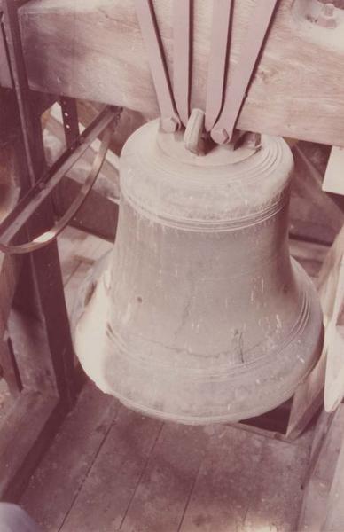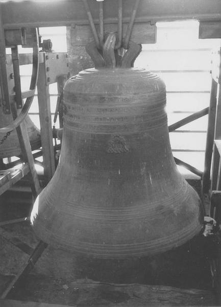 inscription et date : LAVDATE DEVM IN CYNBALI INBILIATIONIS OMNIS SPIRITVS LAVDET DOMINVM SANCTA AGATHA ORA PRO NOBIS 1639. Armoiries couronnées de 5 fleurs de lys et de deux lions.