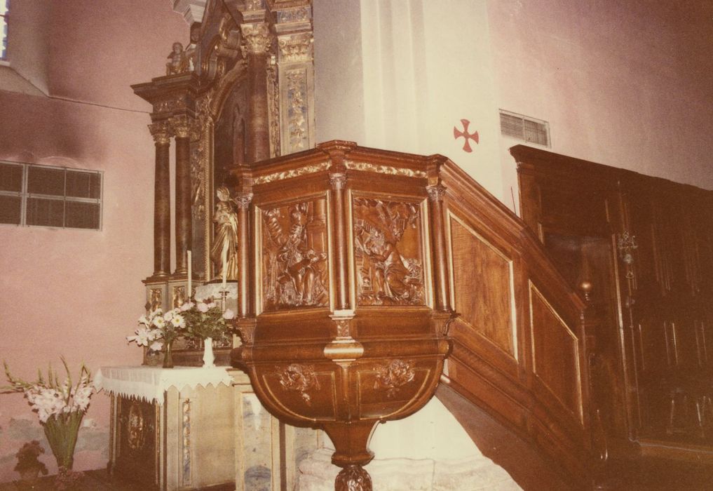 La chaire a fait l'objet d'un remontage dans les années 1970. A l'occasion de déplacement il n'a pas été possible de réintégrer le dosseret et l'abat-voix. Ces éléments étaient encore localisés en 1972.