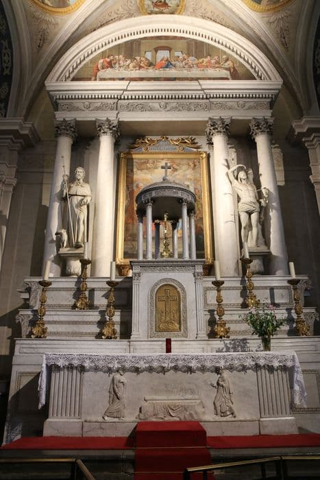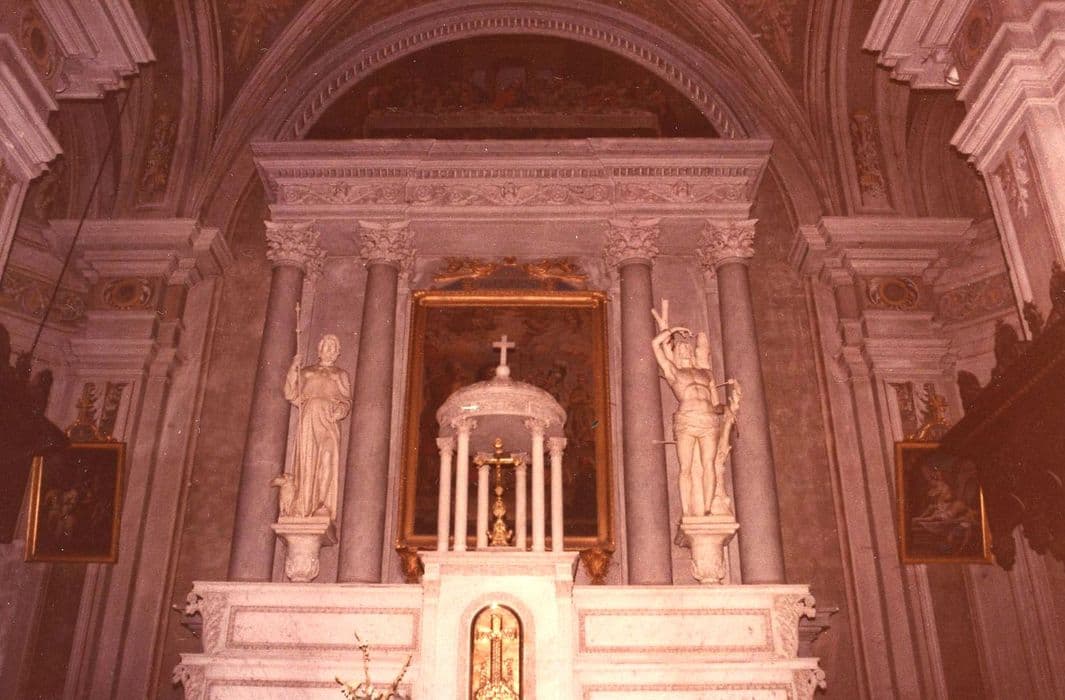 POP | Plateforme ouverte du patrimoineMaître-autel, tabernacle, retable, tableau : saint Jacques conduit au martyre, 2 statues : saint Roch et saint Sébastien (maître-autel)