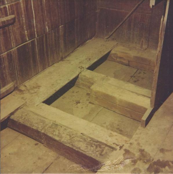 Le buffet repose sur une loggia décorée de panneaux sculptés.