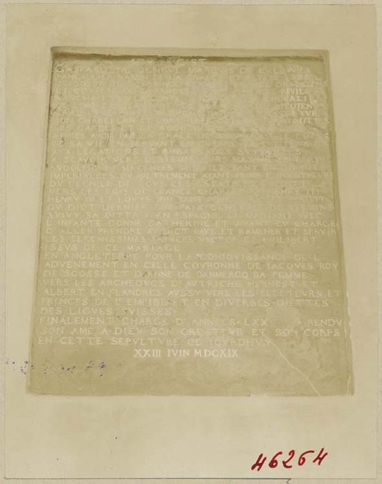 POP | Plateforme ouverte du patrimoineplaque funéraire de Gaspard de Genève, marquis de Lullin