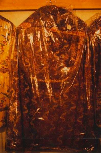 soie (violette) ; dentelle (décor) ; poil ; taffetas ; toile (rose, doublage)