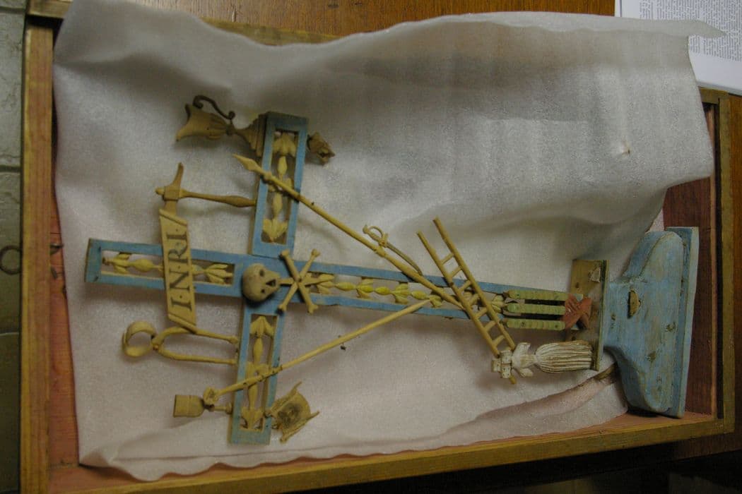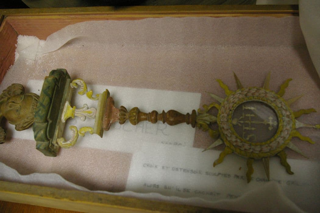 croix ; ostensoir ; boîte contenant une croix et un ostensoir