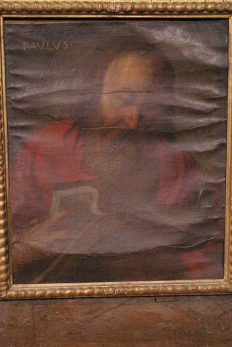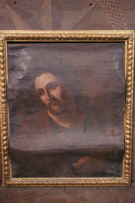 Toiles datées avant 1720. Cette oeuvre appartient à la série des quatorze tableaux donnés par monseigneur de Bernex en 1720, série qui comprenait un Christ bénissant, une Vierge et les portraits des douze apôtres (il en reste neuf aujourd'hui et en 1923 Rebord signale déjà la disparition de deux apôtres). L'acte de donation est passé le 30 octobre 1720 devant le notaire Diaconis. Rebord écrit que les tableaux ont été donnés avec leurs cadres (soit corniches, dorés) et qu'ils proviennent du Révérend Seigneur abbé de Rosillion, préfet de la Sainte Maison de Thonon et marquis de Bernex, frère de mondit Seigneur Donateur, qui les avait fait faire pour servir d'ornement en quelqu'église. Cette série de tableaux apparaît dans l'Inventaire des meubles, livres ou autres effects que monseigneur l'Illustrissime et révérendissime Michel Gabriel de Rossillon de Bernex évêque et Prince de Genève laisse et donne aux Révérendissimes Locques ses successeurs et dans une liste de tableaux appartenant au même évêque dressée vers 1730. En novembre 1922, le prévôt propose de faire replacer ces tableaux dans la chapelle chorale (il sont alors au nombre de quatorze), tableaux qui s'y trouvaient avec une représentation de la Vierge et une du Christ avant les réparations entreprises dans la chapelle. En 1925, il semble qu'il n'y ait plus que 10 tableaux. Une seconde série similaire comportant dix figures d'apôtres est également conservée dans la cathédrale (PM74001194).