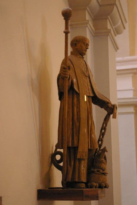 quatre statues : Saint Jean-Baptiste, Saint Bernard de Menthon, Saint François de Sales et Saint Pierre
