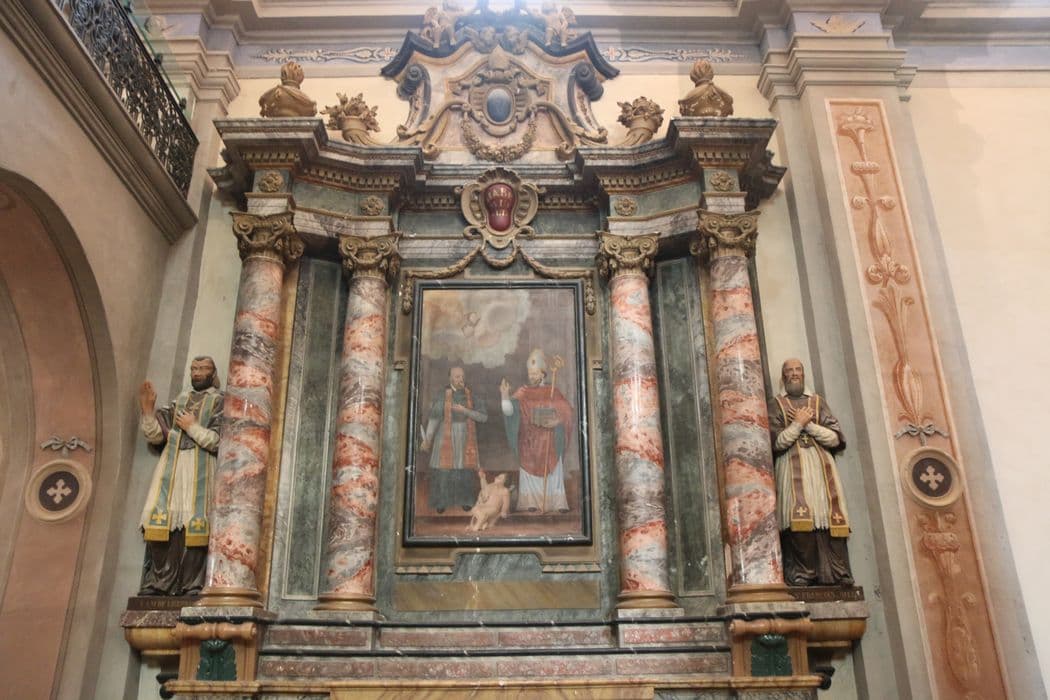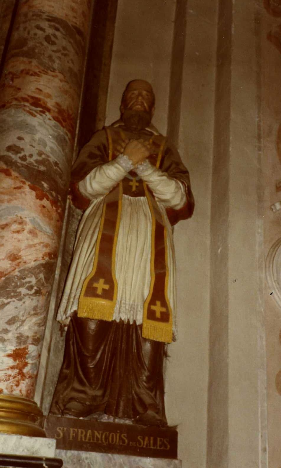 quatre statues : Sainte Christine, Saint Aimé, Saint Alphonse-Marie de Ligori, Saint François de Sales