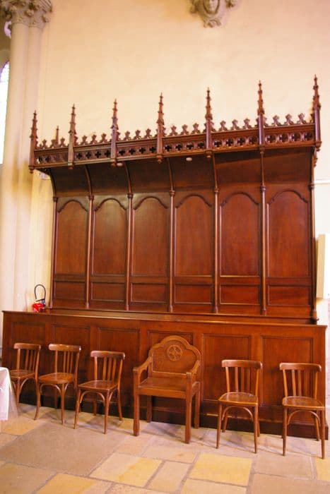 Deux groupes de stalles à six sièges sont disposés de chaque côté du choeur. L'architecture de ces stalles est d'une grande sobriété. Seul les deux dais de style néo-gothique sont ouvragés, décorés de pinacles et de rosaces disposées en frise.