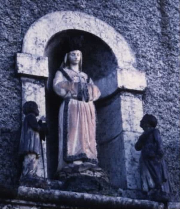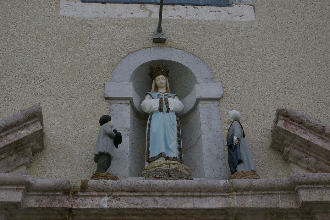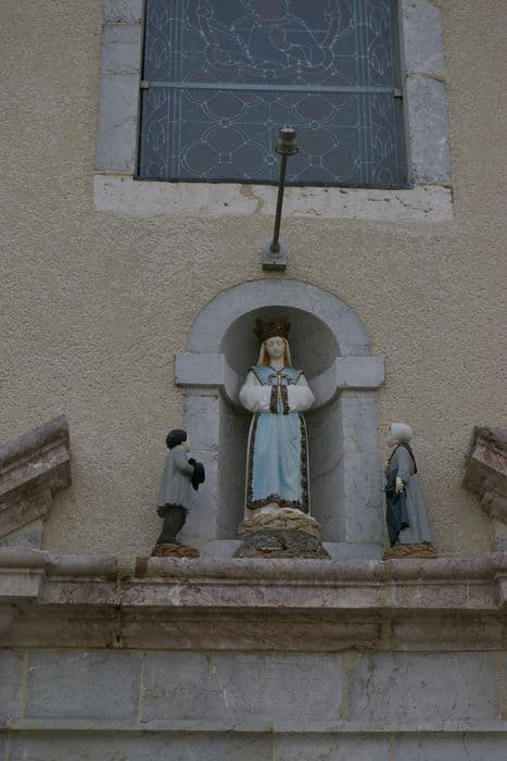 trois statues : Vierge et deux enfants (Notre-Dame de la Salette ?)