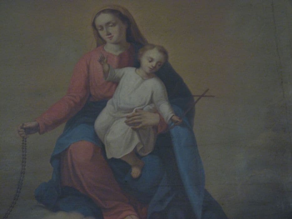 tableau : Vierge à l'Enfant remettant le Rosaire à saint Dominique