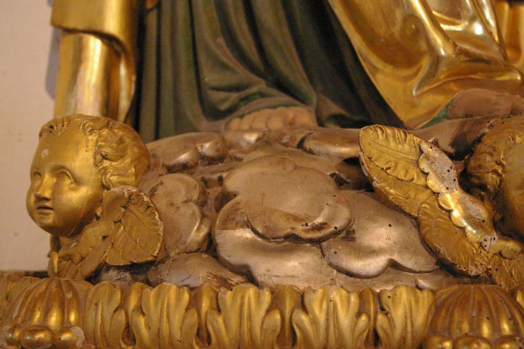 bois : taillé, peint (polychrome), doré ; plâtre (?)