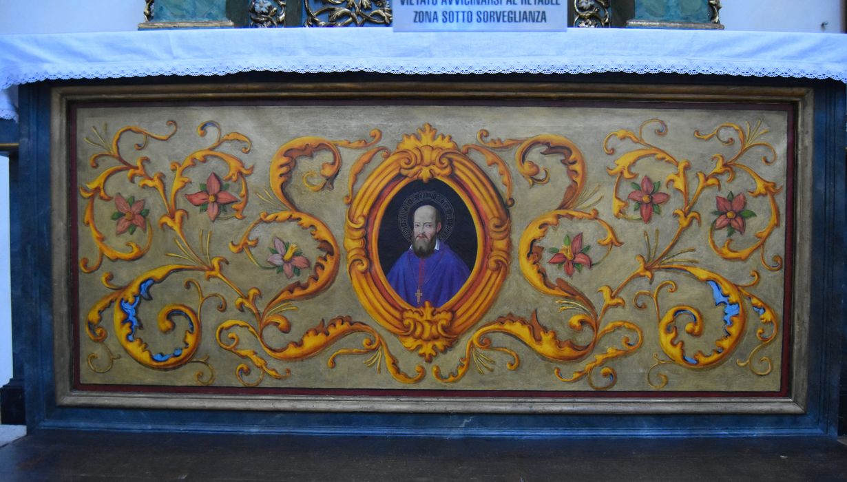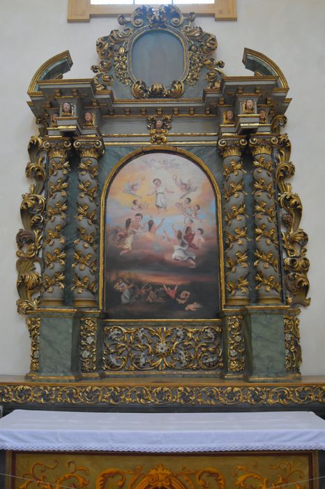 Toile datée du 17e siècle, et ensemble de l'autel probablement daté du 19e siècle (le retable a été aménagé dans l'église lors des restaurations de la fin du 19e siècle).
