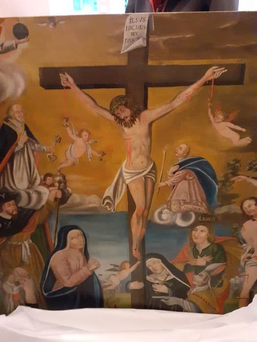 POP | Plateforme ouverte du patrimoineretable et son tableau : Christ en Croix avec des saints