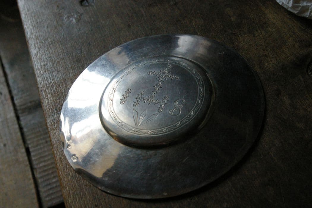 Le calice et la patène sont conservés dans leur étui en cuir d'origine.