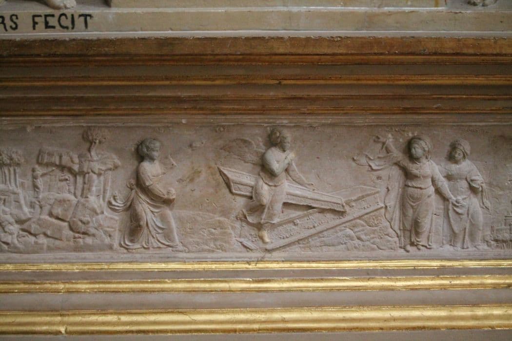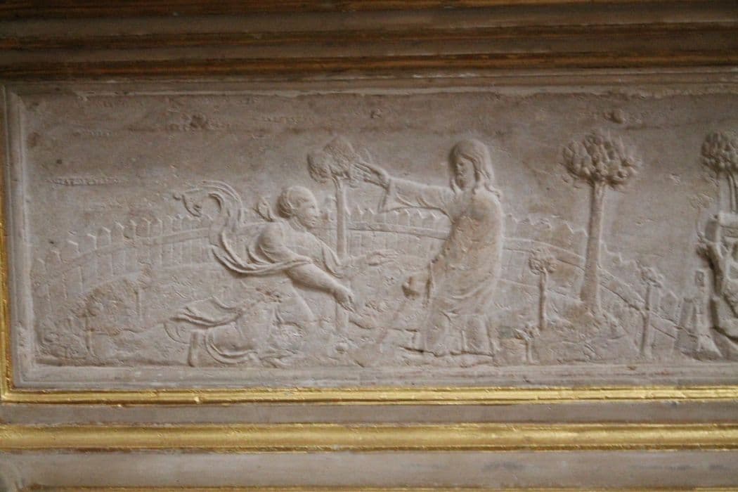 3 bas-reliefs : Le Christ et la Madeleine, Les Saintes Femmes au tombeau, Les Disciples d'Emmaüs