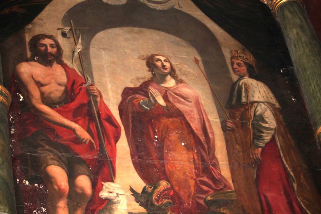 POP | Plateforme ouverte du patrimoine3 peintures monumentales de la chapelle Saint-Vincent-de-Paul : Saint Joachim, la Présentation de la Vierge et une donatrice, Saint Jean écrivant l'Apocalypse, Sainte Marguerite, Saint Louis, Saint Jean-Baptiste, La Naissance de la Vierge, Huit anges portant des instruments de musique