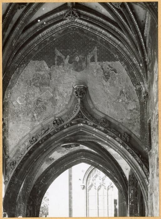 POP | Plateforme ouverte du patrimoinepeinture monumentale du porche : Deux saints écrivant, agenouillés devant une image de la Vierge