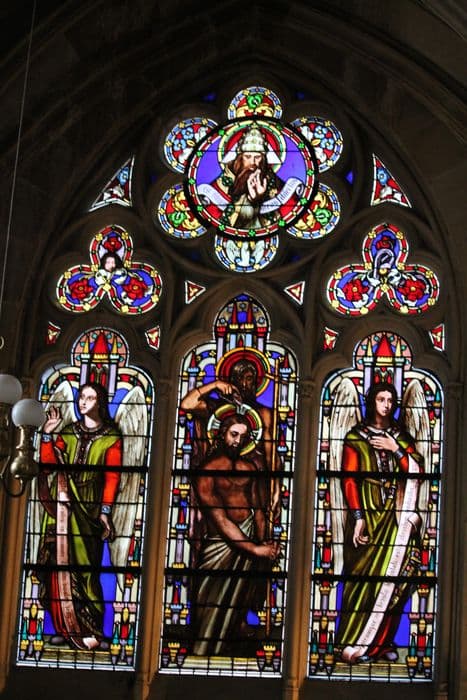 POP | Plateforme ouverte du patrimoineverrière de la chapelle des fonts baptismaux : Le Baptême de Jésus