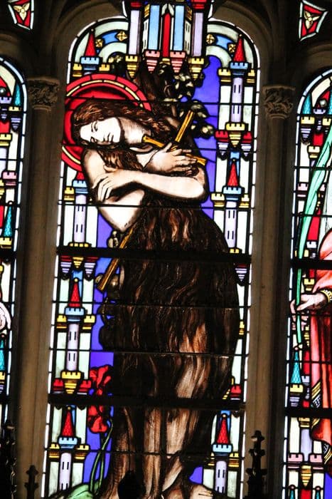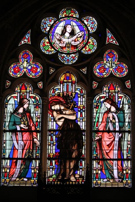 verrière de la chapelle Sainte-Madeleine : La Madeleine entre deux anges