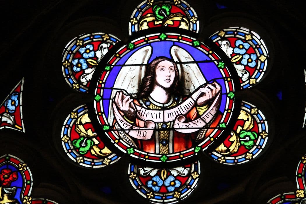 POP | Plateforme ouverte du patrimoineverrière de la chapelle Sainte-Madeleine : La Madeleine entre deux anges