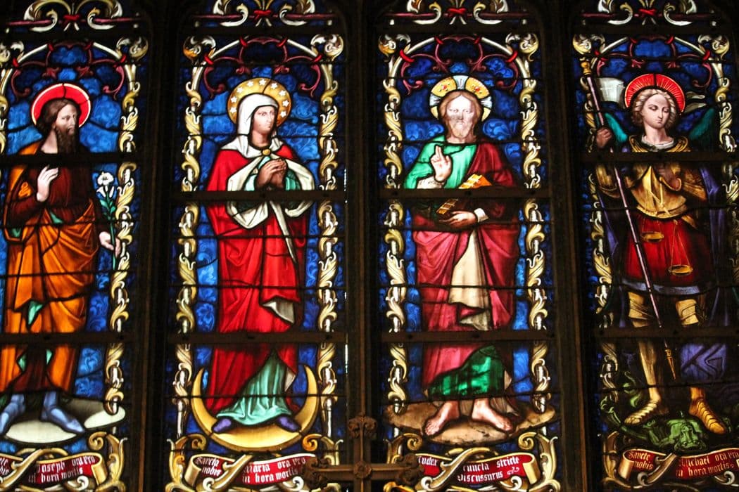 verrières de la chapelle de la Bonne-Mort : Saint Joseph, La Vierge, Jésus Christ, Saint Michel