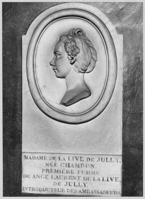 monument funéraire de Mme de la Live de Jully, née Chambon, première femme de M. Ange-Laurent de la Live de Jully, introducteur des ambassadeurs : médaillon