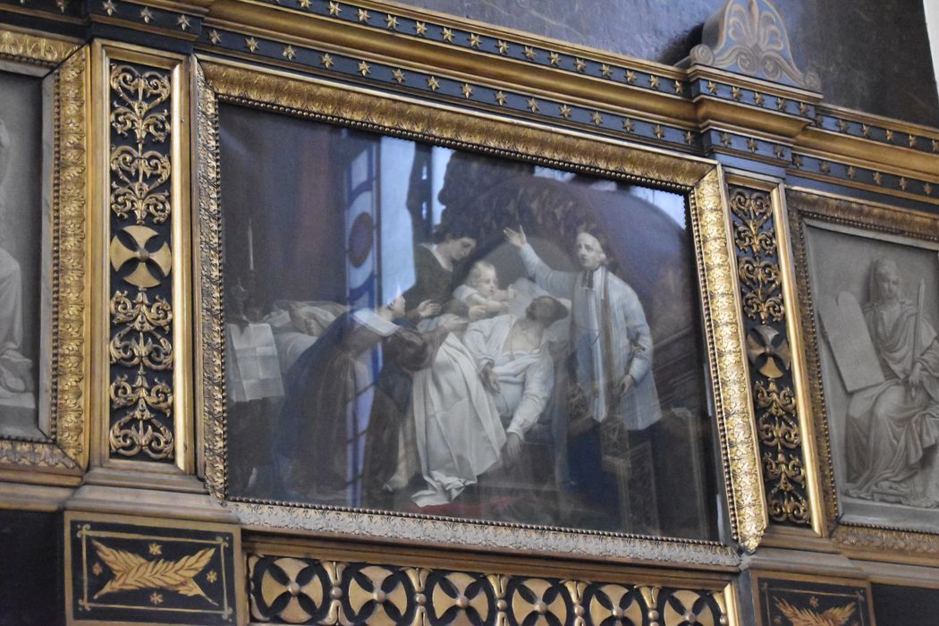 bas-côté droit, 4e travée, chapelle des Ames du Purgatoire, paroi de gauche, panneau central de l'attique
