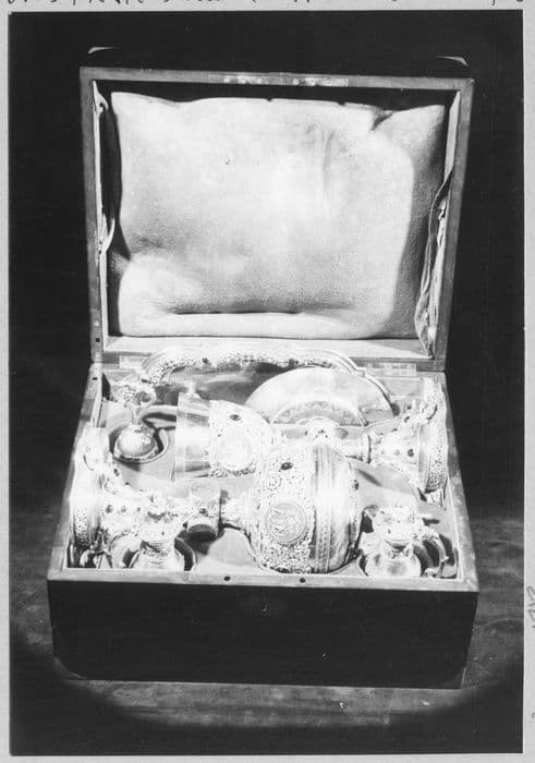 POP | Plateforme ouverte du patrimoinechapelle dans son coffret : calice, ciboire, patène, plateau, 2 burettes, clochette d'autel