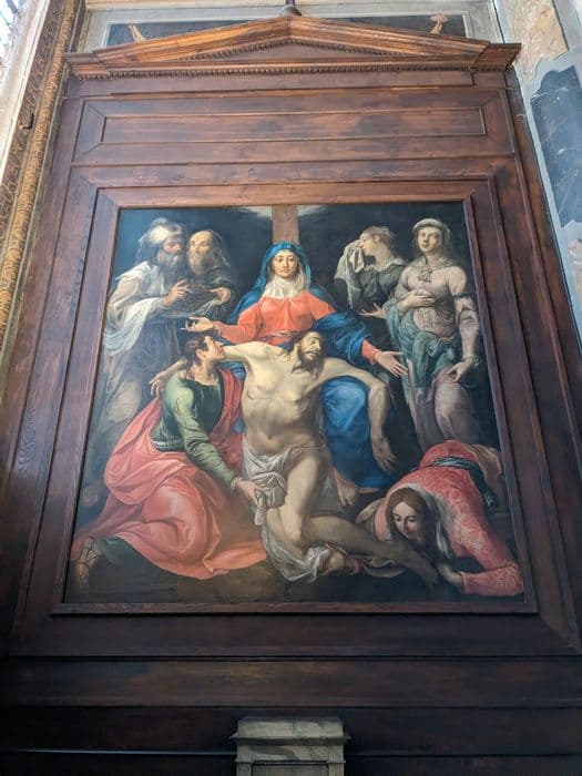 tableau : La Vierge de Pitié entourée de plusieurs saints