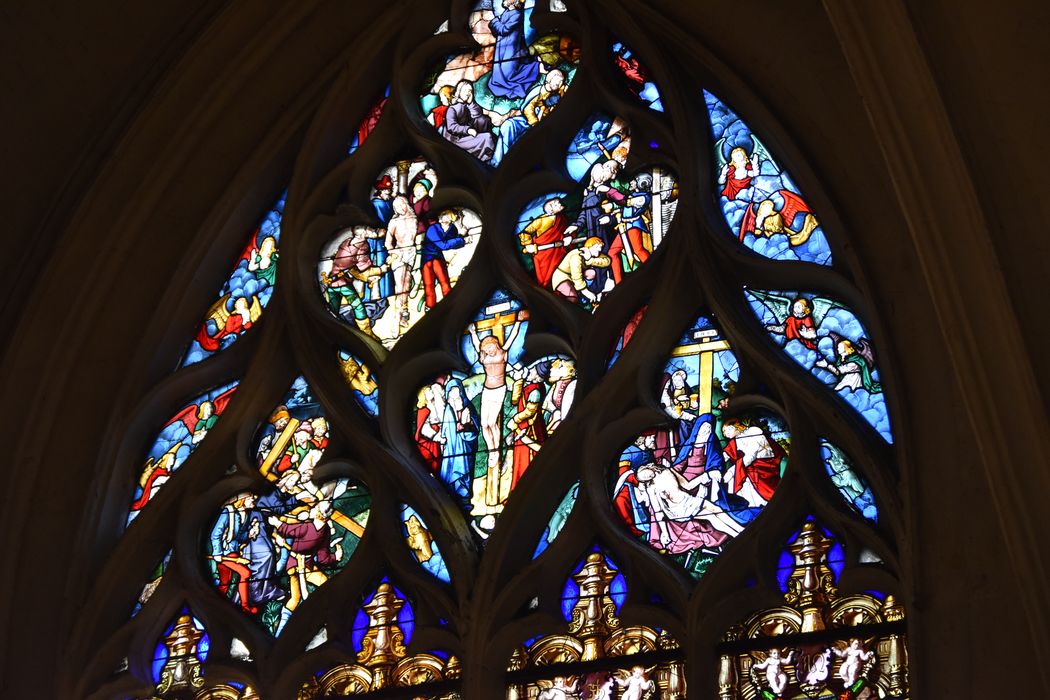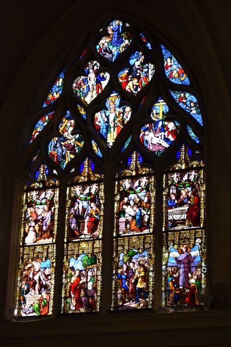 verrière de la chapelle menant à la sacristie : La Vie et la Passion de Jésus Christ
