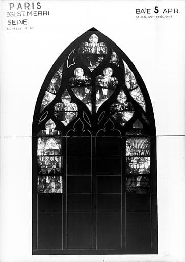 POP | Plateforme ouverte du patrimoineverrière de la nef, 4e fenêtre du côté gauche : Saint Jean-Baptiste dans sa prison, L'Ascension, Sainte Catherine portant une palme, Sainte Catherine dont un ange rallume le cierge