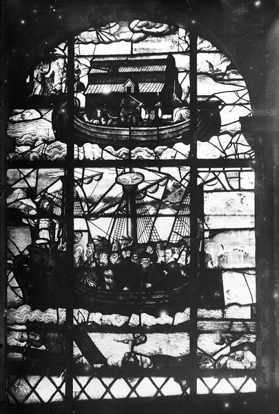 POP | Plateforme ouverte du patrimoineverrière de la salle des catéchismes : Jésus Christ dirigeant la nef de l'église, L'Arche de Noé