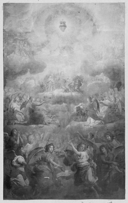 Le coeur couronné d'épines qui occupait le centre de la gloire, était une addition postérieure que le nettoyage à fait disparaître.