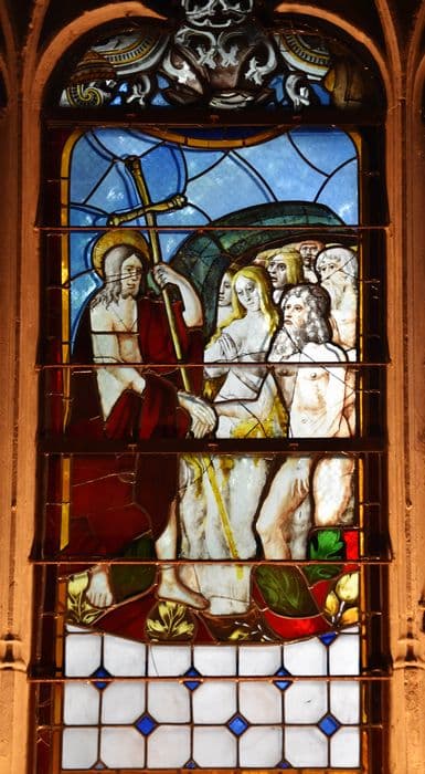 verrière de la chapelle Sainte-Catherine : Jésus descendant aux limbes, Saint Roch et les saints anges