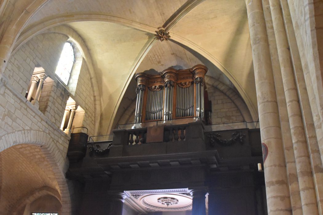 Le buffet à 3 tourelles est installé sur une tribune qui remonte à la fin du 17e siècle. Cette tribune comprend un avant-corps avec deux petites ailes en retour et forme une sorte de portique intérieur avec colonnes et entablement de style dorique. La balustrade ajourée à la partie centrale est ornée de guirlandes de fleurs et de fruits aux deux ailes latérales.