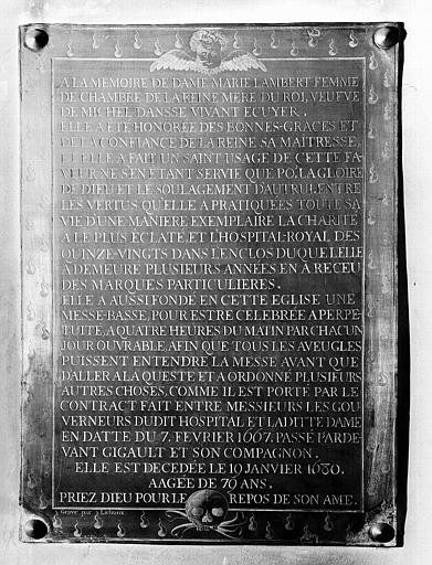 POP | Plateforme ouverte du patrimoineplaque commémorative à la mémoire de Marie Lambert, femme de chambre de la reine Anne d'Autriche