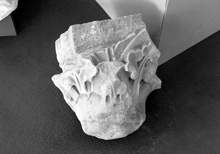 Fragment d'architecture : chapiteau isolé fragmentaire à décor de feuilles d'eau et de lierre. Socle X, n°87.