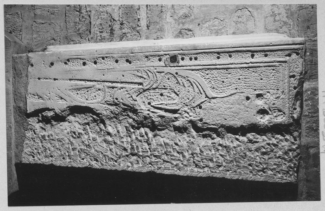 collatéral nord, relevée contre le mur, à gauche de la porte de la sacristie