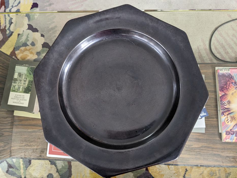 Inventaire 80.M.17 (1). Coupe en verre à bordure bleue avec socle en laiton.